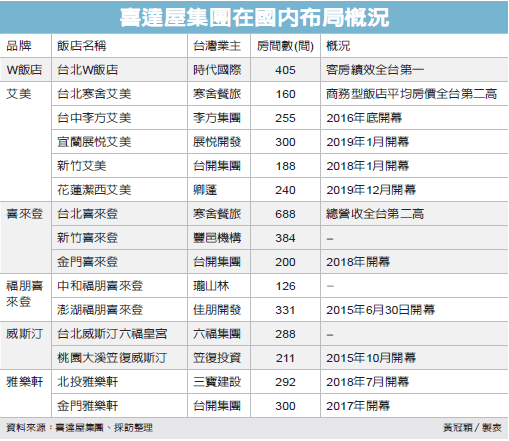 此外,喜達屋在台的飯店還有六福集團的威斯汀六福皇宮、豐邑機構的新竹喜來登、瓏山林的中和福朋喜來登等三家正在營運中。