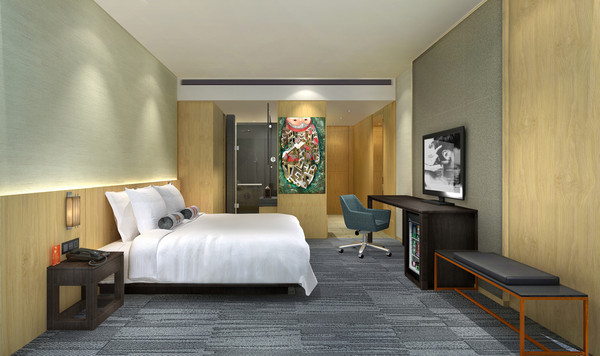 | ▲Aloft Taipei Zhongshan Aloft Room 台北中山雅樂軒酒店客房示意圖,客房內皆有招牌舒適睡床、Bliss® 的沐浴備品、多功能面板與免費無線網路,且更配置有來自台灣在地新銳藝術家的創作品裝置藝術,共88幅的原創畫作展現台灣藝術設計的軟實力。(圖/台北中山雅樂軒酒店提供) |