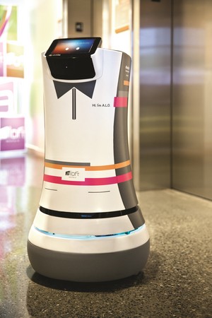 ▲左圖:雅樂軒酒店阿洛(A.L.O.)服務機器人(圖/台北中山雅樂軒酒店提供);右圖:Aloft Taipei Zhongshan Exterior台北中山雅樂軒酒店外觀示意圖(圖/台北中山雅樂軒酒店提供)