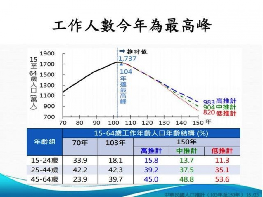 除非只想做個十幾、二十年以內的生意,這波全球人口老化的浪潮,先從嬰幼兒相關產業開始波及,接著是十幾、二十年的學校教育因學生人數減少面臨陸續減班、裁撤、整併,旅館業長期愛用及仰賴的實習生勞動力必然大受影響,未來正職的人力也會跟著牽連,當然,年輕勞動力的減少對於大部份產業衝擊是無法倖免的。銀髮商機?確實前景大好,但試問,將要由誰來服務呢?醫療生技產業?研發人才是否足夠支撐其發展也是問題。