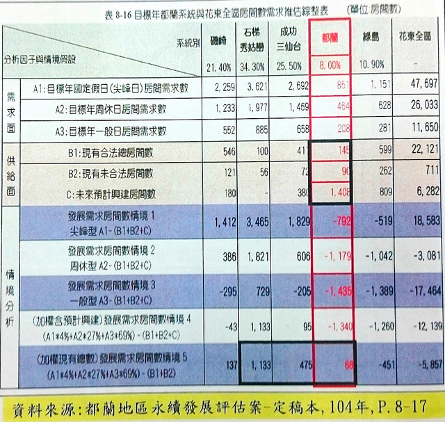 但地球公民基金會花東辦公室主任蔡中岳指出,在該評估報告中,都蘭系統在2023年所需增加的房間數不過68間,但要在都蘭灣開發的案子加起來卻是要增加上千房間,尚有垃圾、污水、交通等衝擊,都將造成加乘效應,這也是他所參加的「花東地區永續觀光發展諮詢委員會 」不斷向東管處建議進行政策環評的原因。