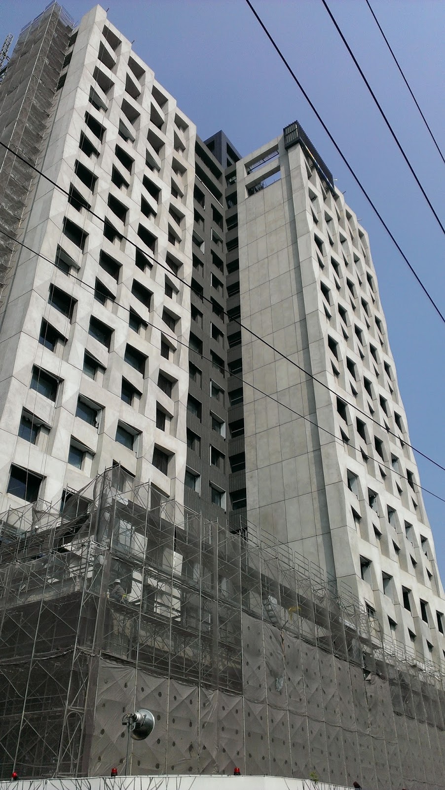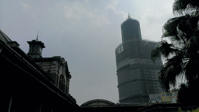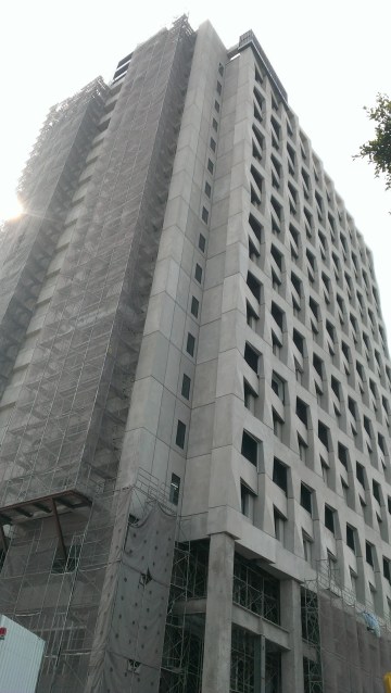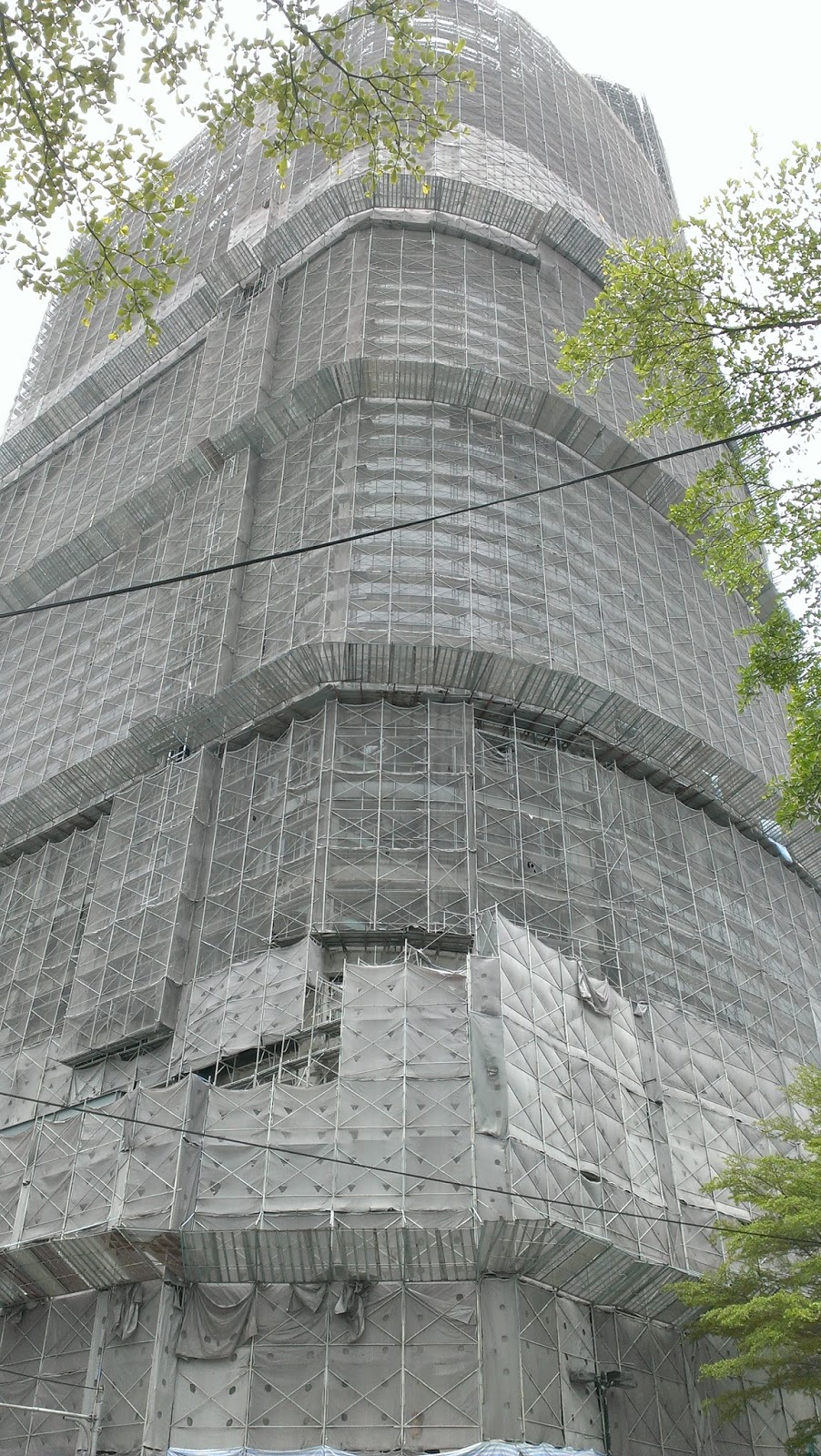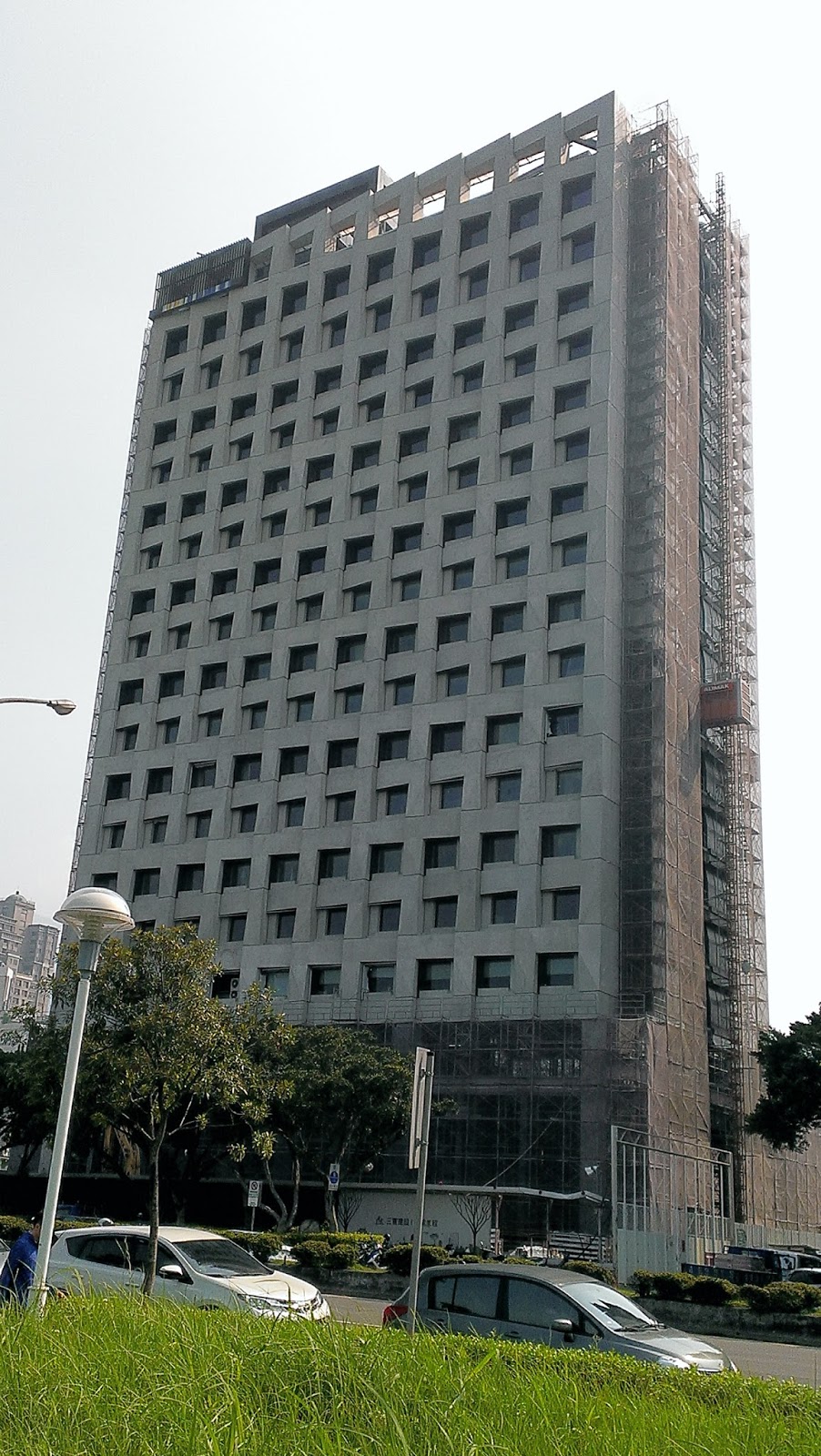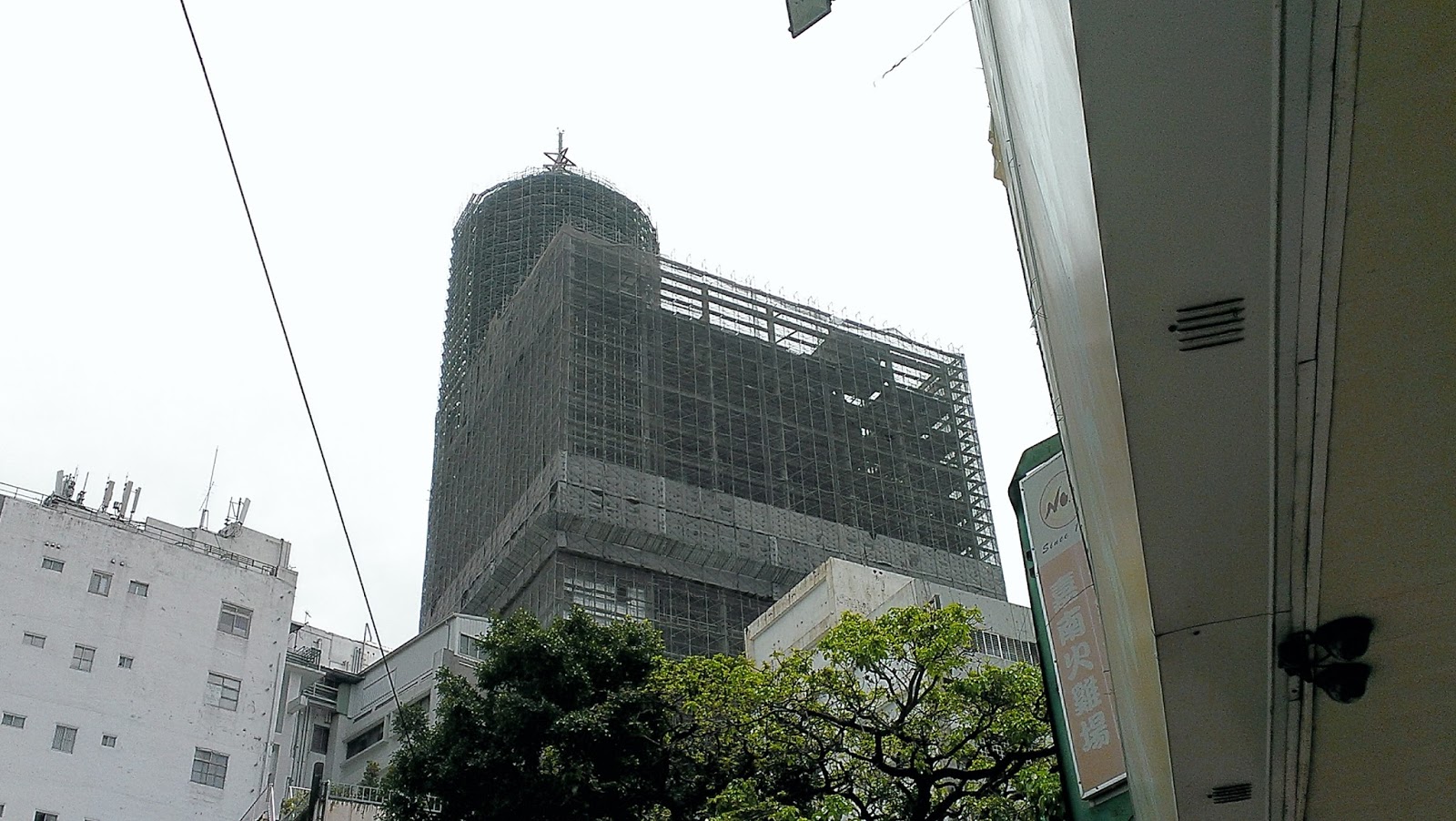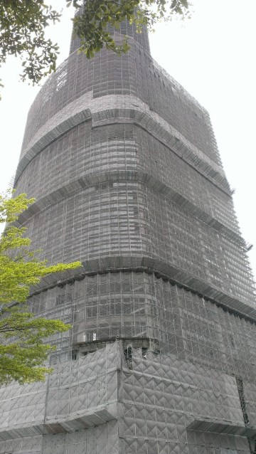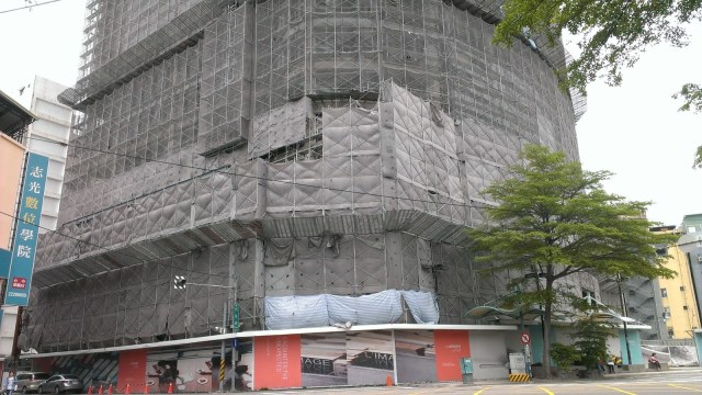 興建中的台中艾美酒店外觀 (鷹架帆布包覆緊緊)