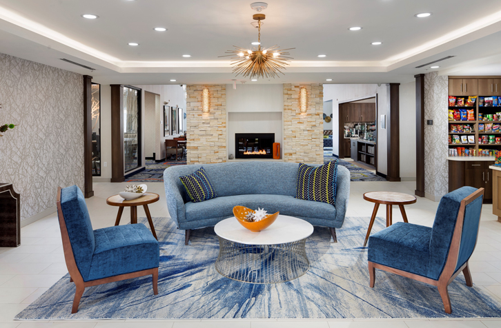 The Embassy Suites by Hilton McAllen Convention Center in McAllen, Texas, features cool colors and metallic finishes. (Photo: MatchLine Design Group)