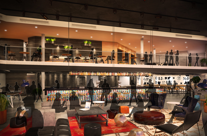 The lobby at the Sir Adam Hotel in Amsterdam, which is slated to open this fall, will have a living room-like lobby that will serve as the cultural hub of the building and the neighborhood. ICRAVE is designing the property. (Photo: ICRAVE)