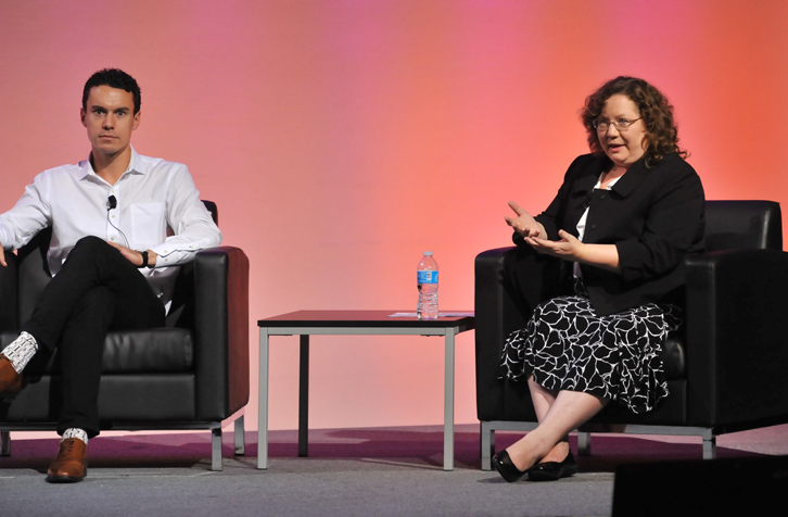 Josiah Mackenzie (left), VP of business development at ReviewPro; and Christine Hight, senior director of market research for Hilton Worldwide Holdings, share insights about how millennials book hotels and travel during a panel at the recent Southern Lodging Summit. (Photo: Don Reber Photography)