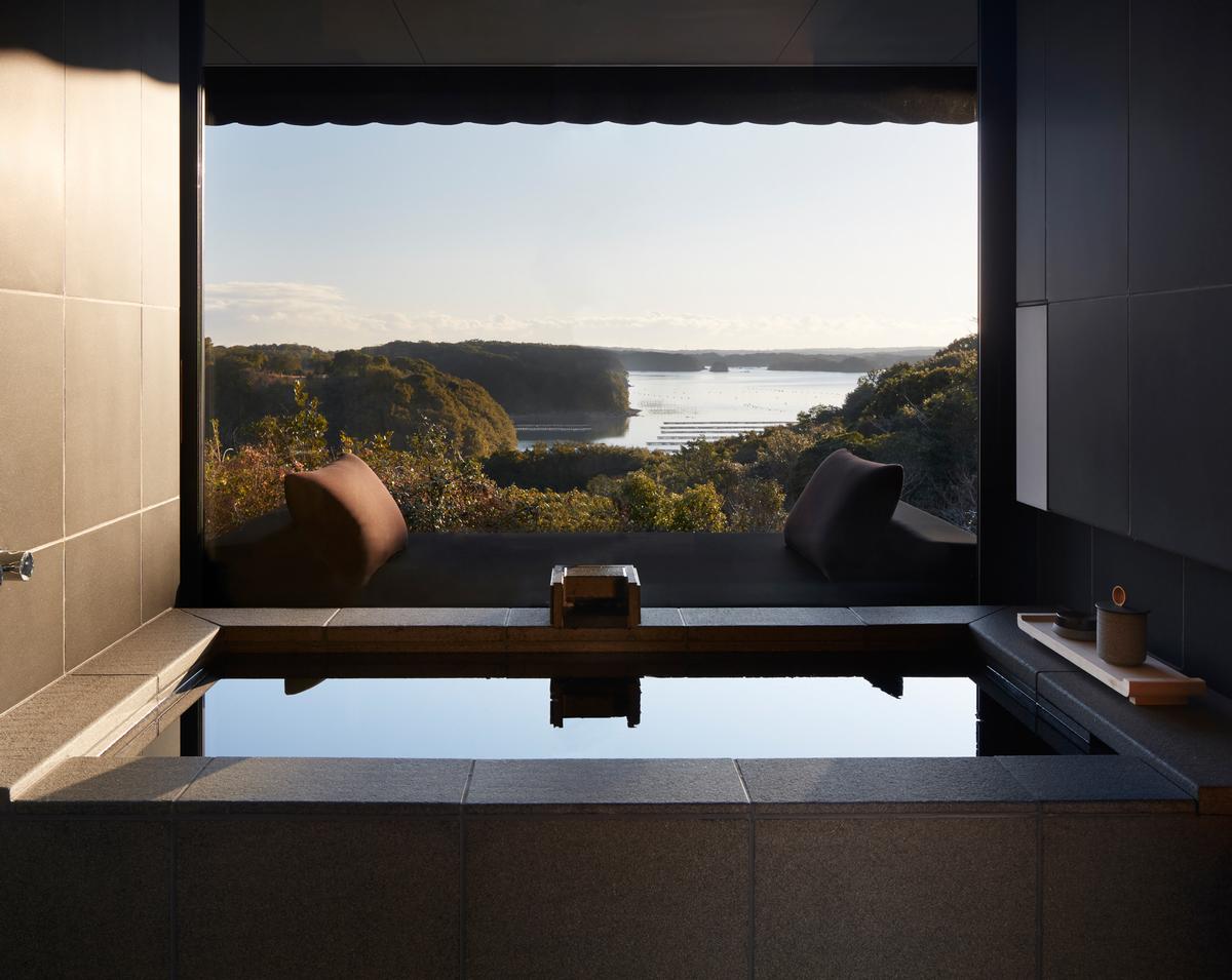 再看建築,Kerry Hill同樣以現代方式重新演繹日本民家建築,低矮屋面與杉木外牆與環境相互呼應,更過分的是整面牆換成落地玻璃,周圍種滿櫻與楓,四季輪轉光用想的就夠美;房內沉穩自然,唯浴室以黑色玄武岩增添奢華感,屋內更請來著名京都和服腰帶大師山口源兵衛打造壁飾;此外,餐廳與SPA當然是掛保證,賓客還能透過私人行程體驗伊勢神宮或被列為文化遺產的熊野古道,或進入可以鳥瞰英虞灣的Nemu高爾夫俱樂部。