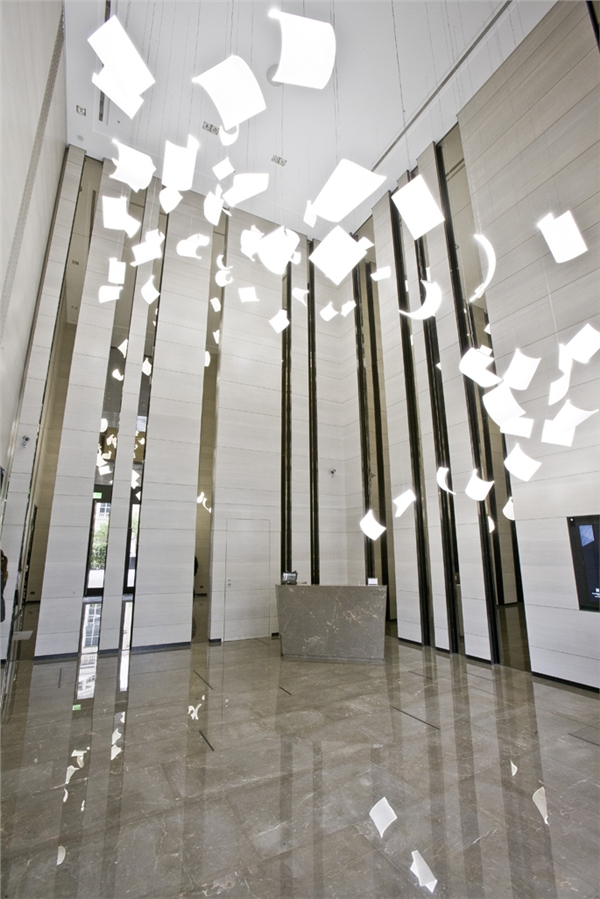 | 曾展示於法國里昂市議會的「狂風驟起」,如今常設台北艾麗酒店,彷彿紙片被強風吹起,可以從不同角度觀賞,別具趣味。(圖片來源:http://mag.cnyes.com/Content/20131203/9E0A925EC3BD4C38A63DD869EF36E943.shtml) |