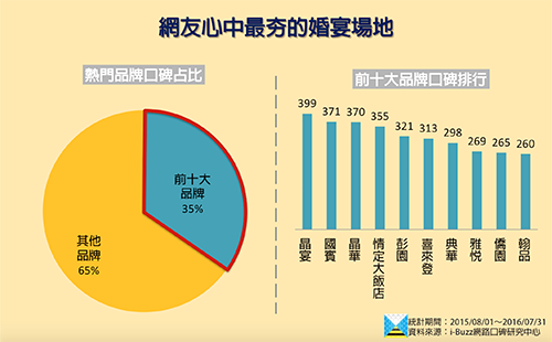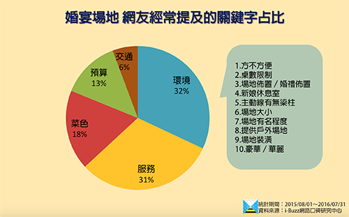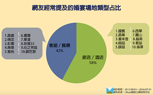 (2016-11-02)去年8月至今年7月之間婚宴場地相關口碑,看看新世代新人們所討論的婚宴場地,網路口碑究竟呈現何種樣貌?