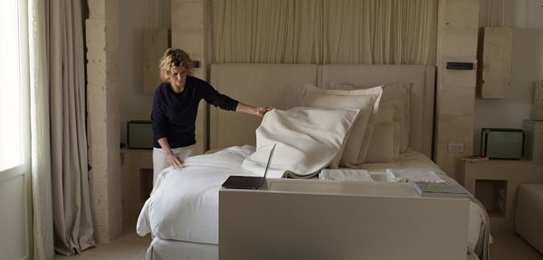 | (圖片摘自電影「五星級美好人生(A Five Star Life)」– 酒店總經理得知祕密客只因床底下用過的拖鞋而評比不及格時感到不悅) |