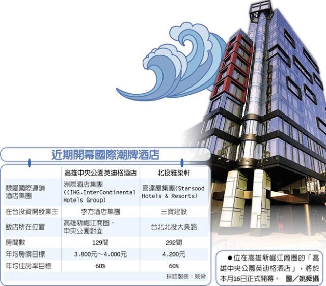 台灣觀光飯店市場正式進入「潮牌競爭」世代,繼「台北W飯店」與九昱建設投資的「台北中山雅樂軒」之後,李方酒店集團引進洲際酒店集團旗下「英迪格酒店」,並委由對方全權經營管理的「高雄中央公園英迪格酒店」,將於本月16日正式開幕。