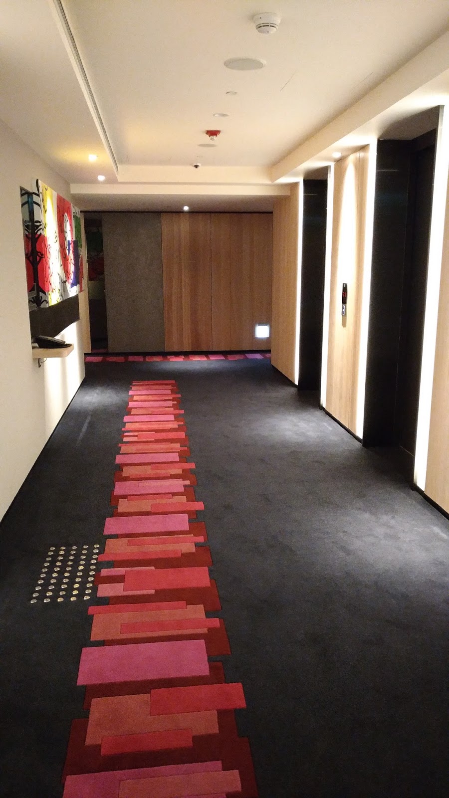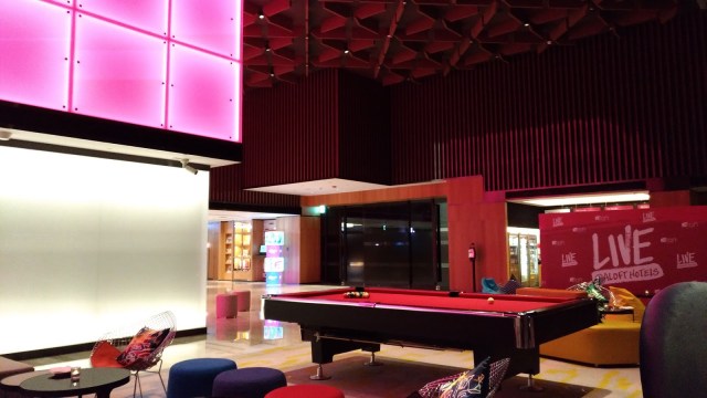 剛進雅樂軒大廳時,就看到一些工作人員在準備隔日(1/15)Live@Aloft的場地佈置,會在WXYZ吧及Re: fuel之間舉行。先前看到一些網路照片,以為酒吧、大廳燈光造景暨電梯區、前檯接待區的間隔過大而顯得空洞,實際上覺得還算是剛好,而個人其實也偏好挑高的空間。(假設抵達的時間點沒有佈置的工作人員,而僅有前檯接待區有服務人員的話,個人覺得若能有類似「迎賓大使」一職在大廳中心區走動式服務會更好。為何?留待之後說明。)