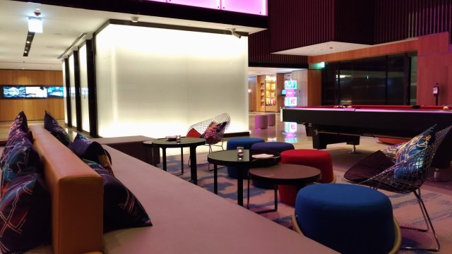 | 聚聚樂餐廳的另一區規劃,有一排落地窗可見「後院(Backyard)」(待之後說明) |