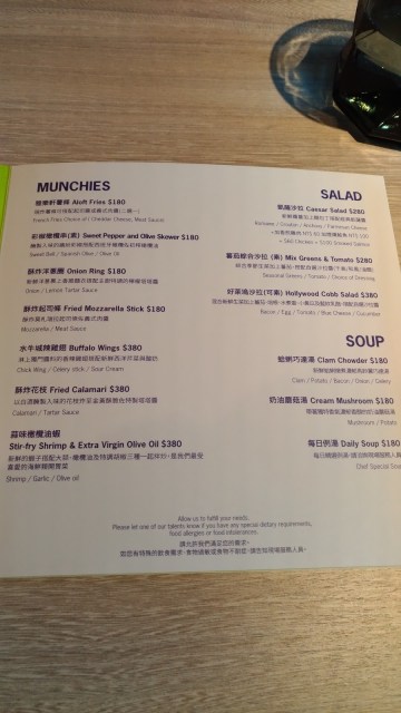 先從入住當晚的晚餐說起。由於北投雅樂軒酒店目前屬於試營階段,位於館內三樓的主要餐廳「聚聚樂(Nook)」尚未開放晚餐時段,而僅提供自助式早餐與單點式午餐,因此便前往位於一樓的WXYZ酒吧,看看其熱食點心的菜單。