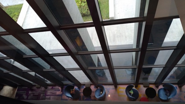 | 等候餐點的過程中,從聚聚樂向下眺望WXYZ吧旁的落地窗景,蠻特別的 |