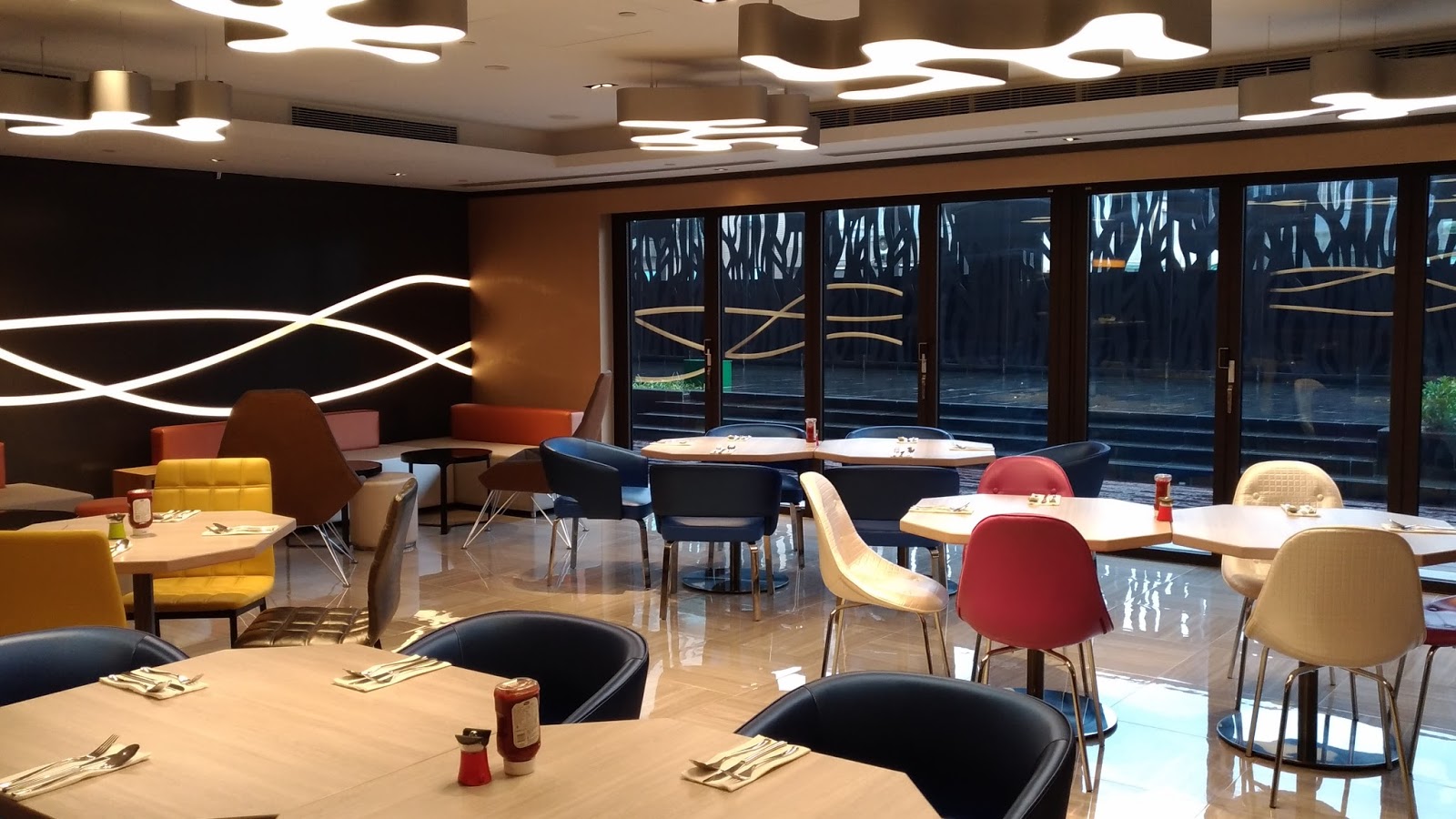 | 聚聚樂餐廳呈L型,裝潢年輕活潑,並採用有設計感的傢俱 |
