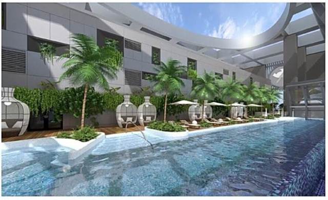| 預計在6月開始試營運的板橋凱撒大飯店,頂樓設有一無邊際泳池。(圖/凱撒飯店連鎖) |
