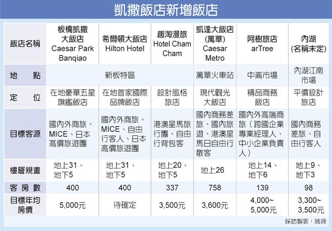 | 凱撒飯店新增飯店一覽表(圖片來源: http://www.chinatimes.com/newspapers/20170301000118-260204) |