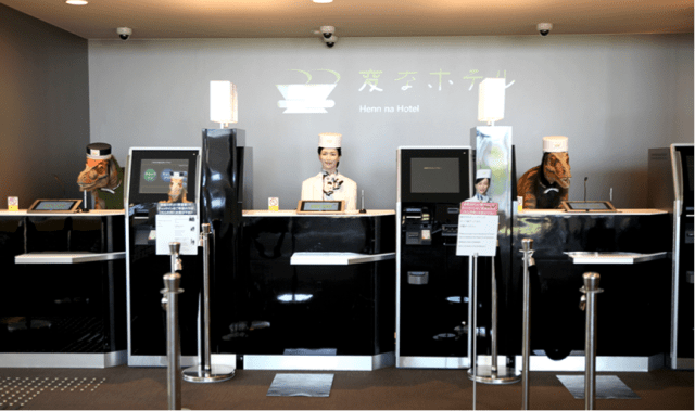 以「世界首家機器人酒店」打響名號的怪異酒店標榜前台服務員、行李生都由機器人擔任,於2015年7月在日本長崎縣佐世保市啟用。第二家怪異酒店距離舞濱車站(最接近東京迪士尼樂園的車站)僅有18分鐘的步行距離,前台服務仍將由恐龍機器人、擬真機器人擔綱,整個酒店的員工總數約僅有6人、遠低於正常的20人。