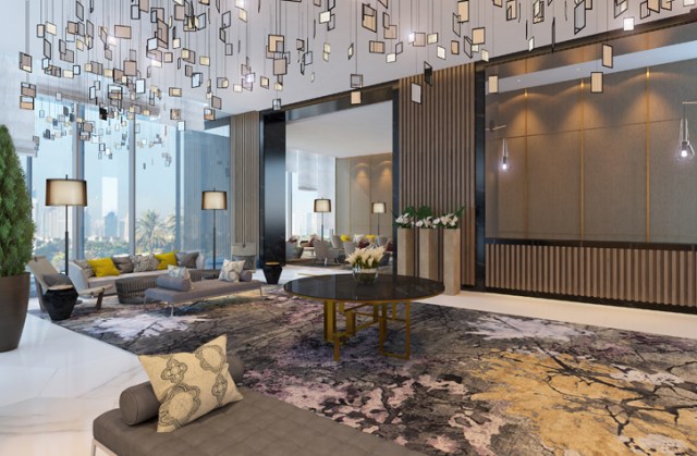 | A rendering of the lobby area of the Taj Hotel, scheduled to open in late 2018 in Dubai. Wilson Associates is designing the hotel. (Rendering: Wilson Associates) |
