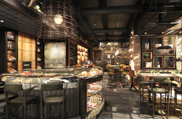 | Wilson Associates is designing a Taj Hotel in Dubai, United Arab Emirates, which is slated to open in late 2018. Pictured is a deli/bar concept for the hotel. (Rendering: Wilson Associates) |