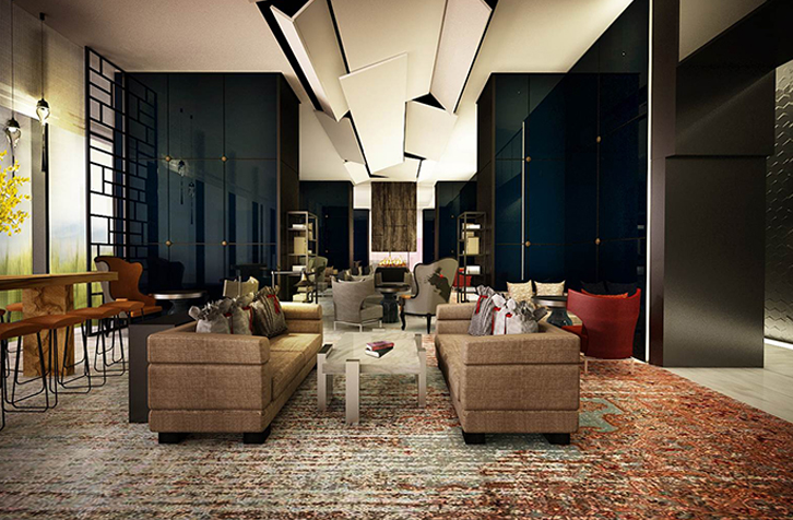 | Wilson Associates’ lobby design at the Fairmont Quasar in Istanbul was inspired by a 1930s liquor factory. The hotel opened in January 2017. (Photo: Wilson Associates). |