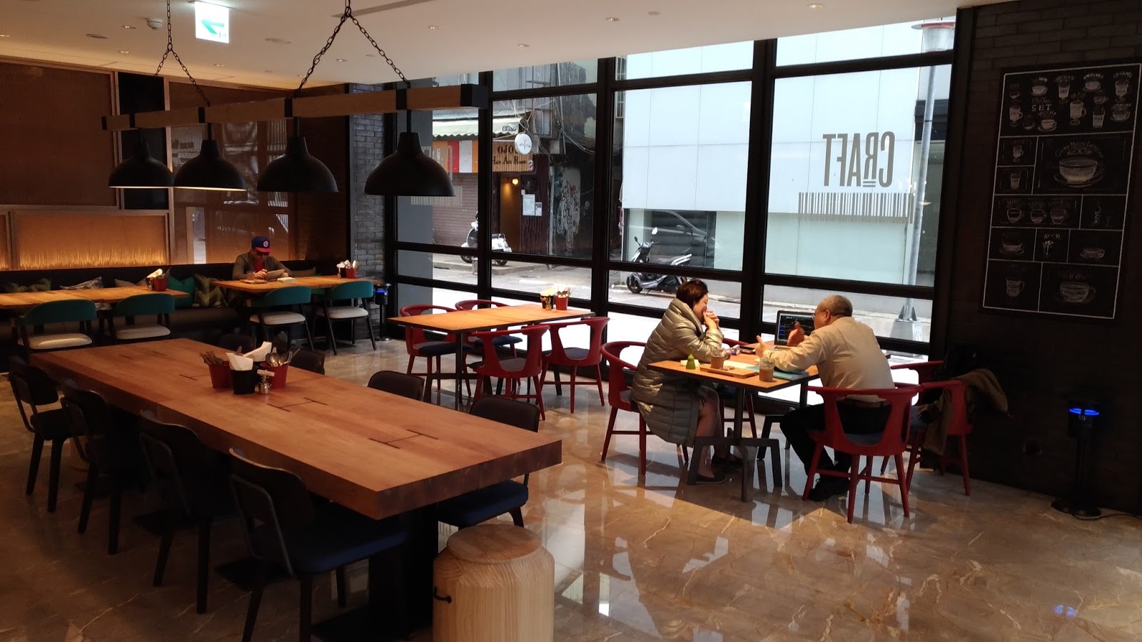 | Craft 咖啡店的座位02:長桌區,適合人數較多或需要大桌談公事的客人 |