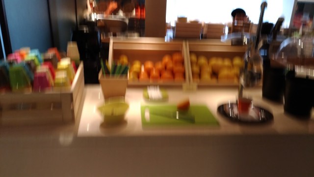 | (拍的時候有些晃到)現搾果汁區:有柳丁、香吉士、葡萄柚,可現切現搾。現場服務人員也可以代為服務 |