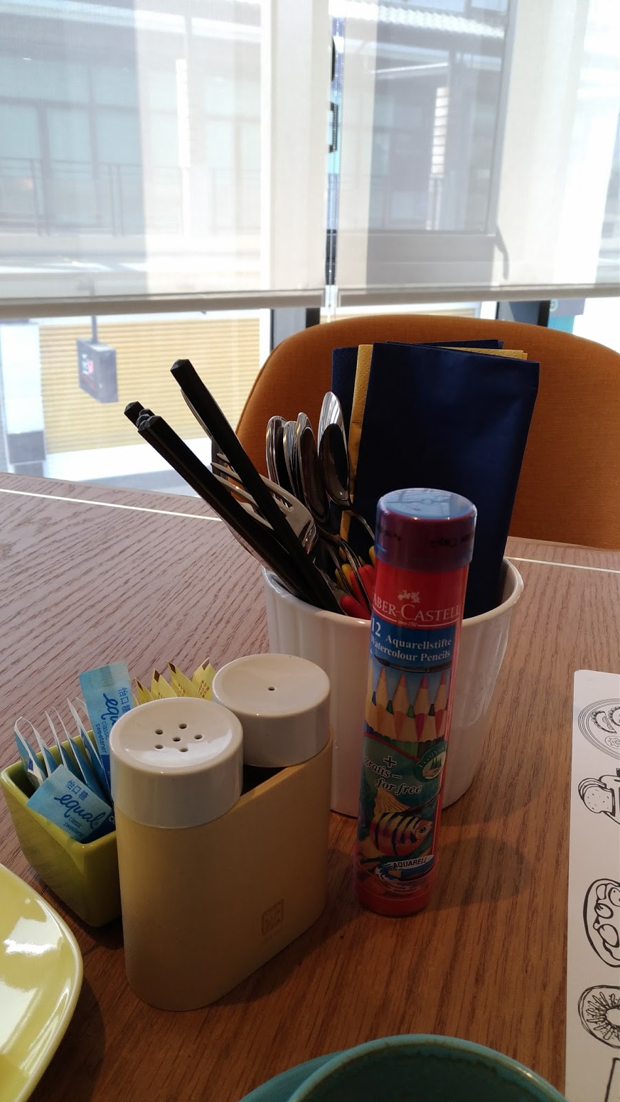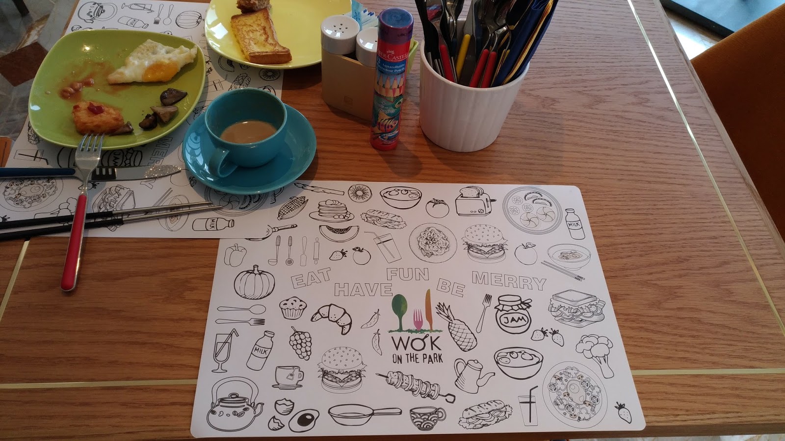 | 早餐時間的餐桌會多擺一小罐彩色鉛筆組,給小朋友吃飯無聊時的有聊方案 |