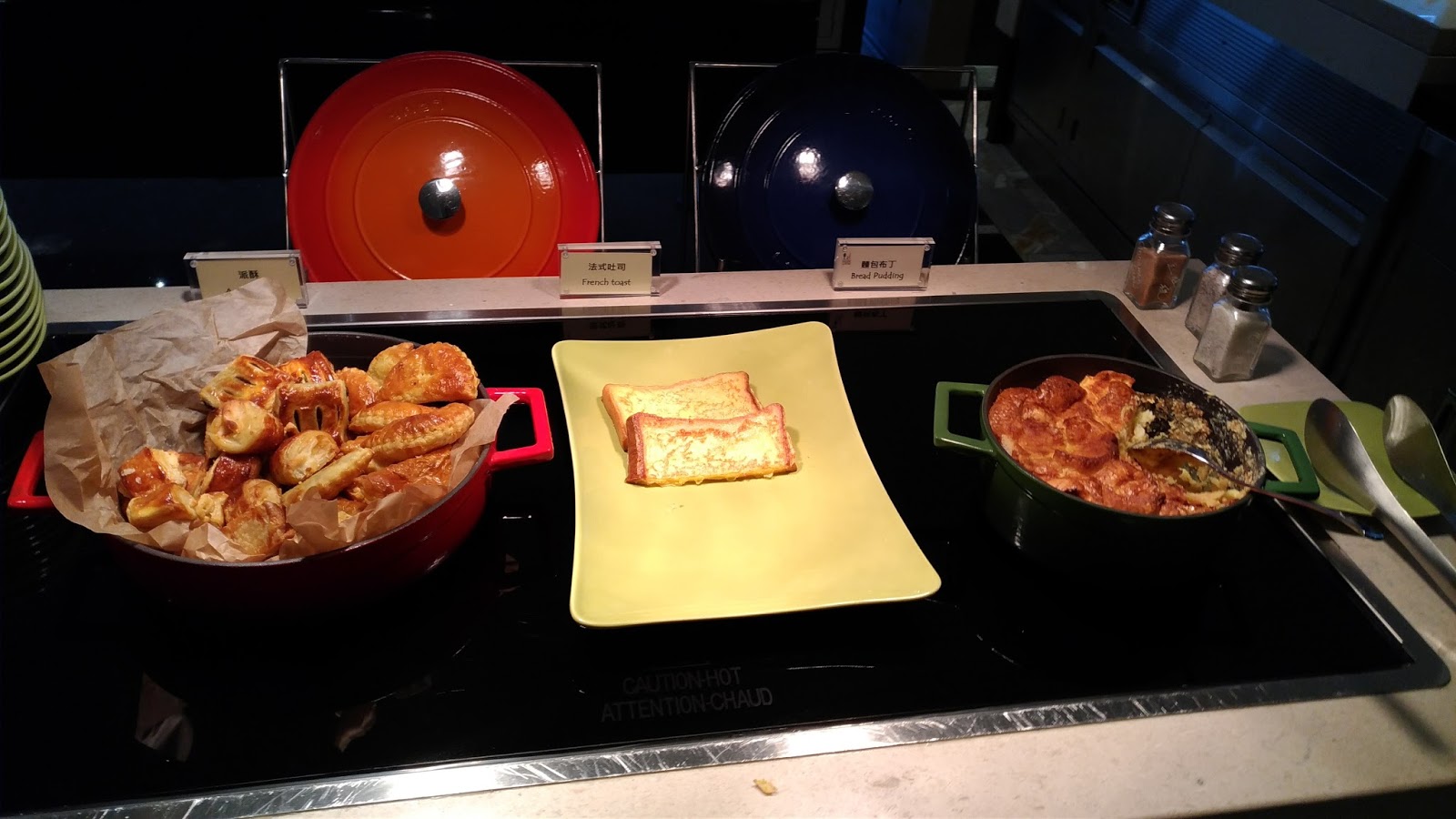 | 熱的麵點區:丹麥麵包、法式吐司、麵包布丁 |