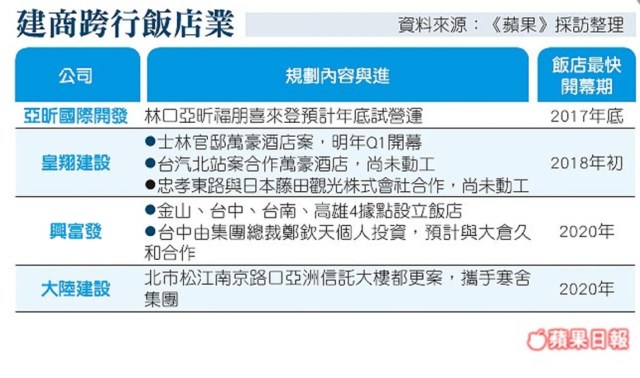 皇翔緊跟明年Q1開幕 興富發擬4飯店案