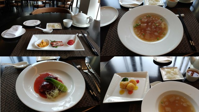 往下順著樓梯前往位於1樓的麗軒中餐廳,時間已差不多是下午1點,趁著仍是午餐時段趕緊點餐。餐廳以單點為主,而平日有另外提供套餐(分為NTD880+10%及1280+10%二種),選擇了前者,並且加點一壺茶(NTD60+10%)