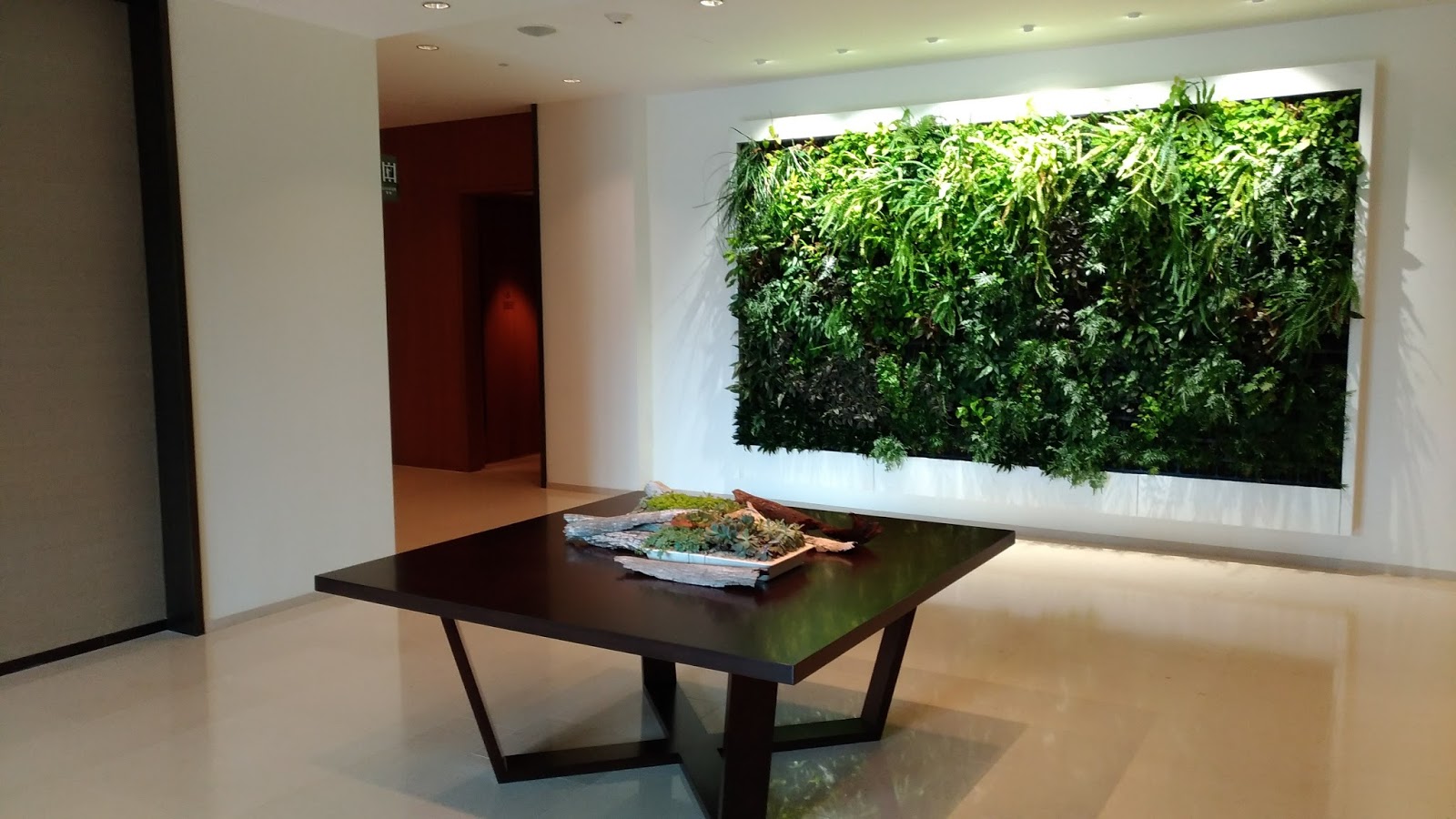 剛踏入大廳,其實就聞得到筆者很喜歡的白茶蘆薈香氣,這是威斯汀特有的品牌氣味,給人一種清爽放鬆的感覺,而下方照片中的直立型植栽牆(從二樓大廳往商務中心及客房電梯的方向),也是感官式迎賓的特點之一,體現與自然元素融合的意念。