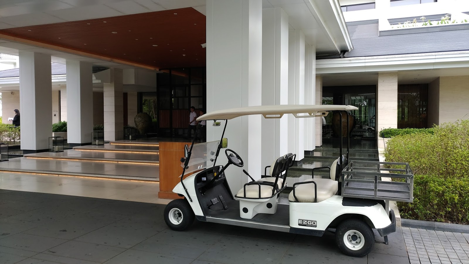 | 酒店大門口的造景與高爾夫球車(應該是需要預約,大溪高爾夫球場就在一旁大概100~200公尺處) |