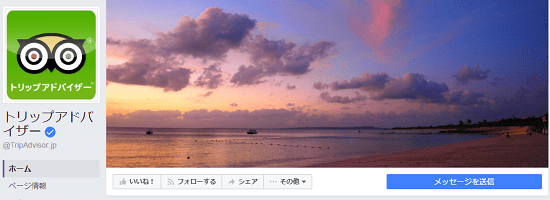 此為國際性旅遊評論網站TripAdviser的日本官方臉書專頁。 此網站以飯店設施的旅客評論與價格比較為主,除了官方網站之外,也提供App服務。其母公司位於美國,目前為世界最大型的旅遊評論網。