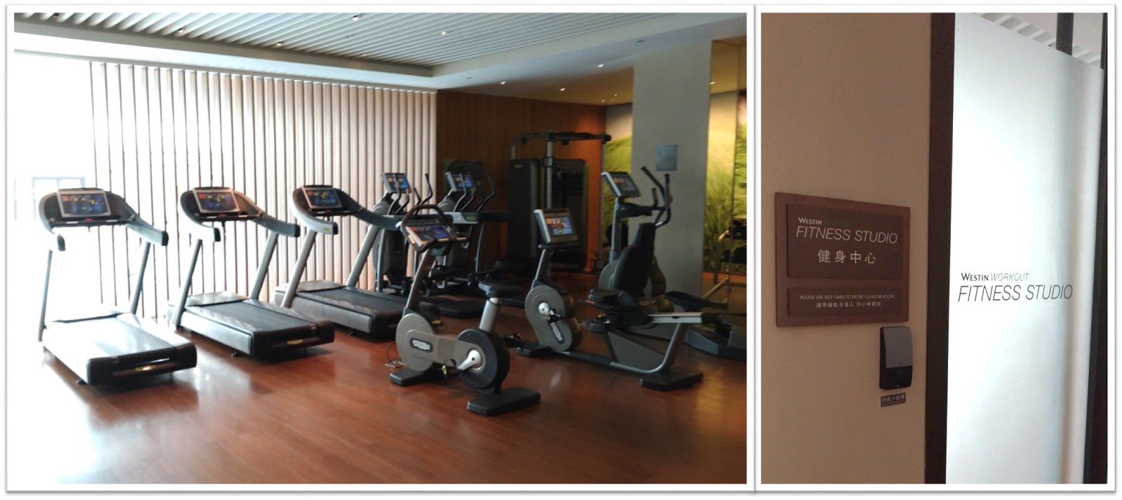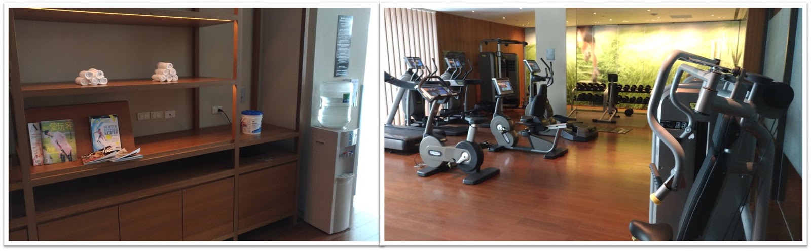 | 右: 健身中心入口須以房卡感應;左: 健身中心的器材配置之一 |