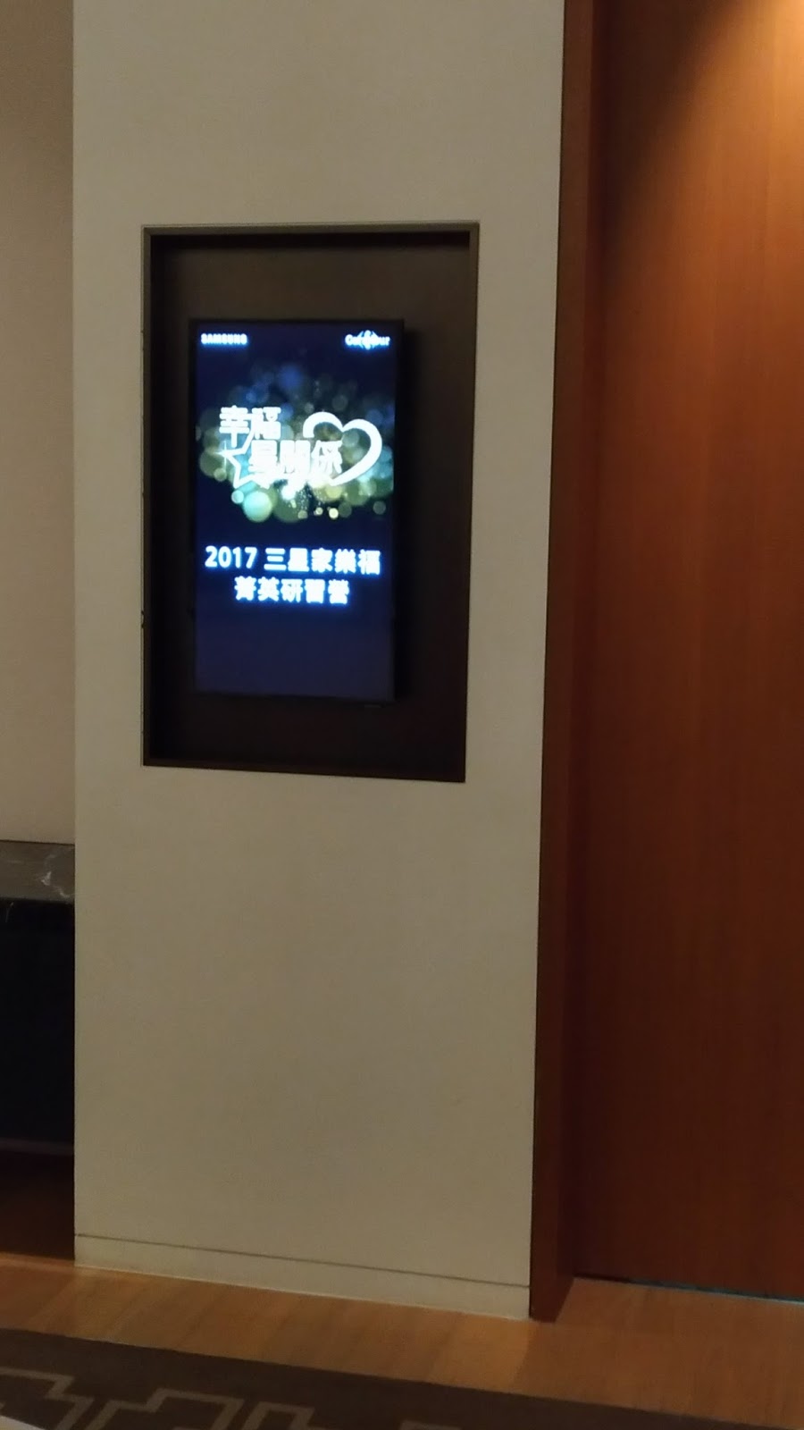 | 台灣三星公司針對家樂福員工所舉辦的教育訓練活動(圖為電子告示牌) |