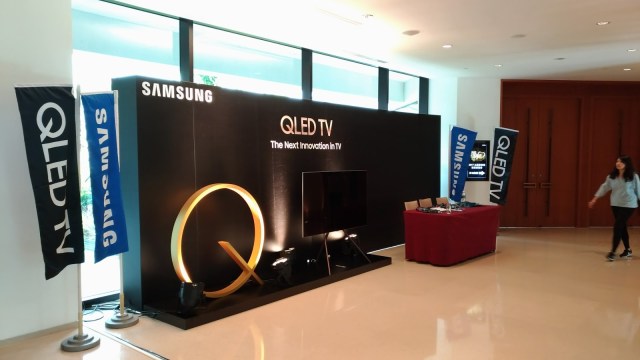 | 三星公司在大廳一側所擺設的展示區與報到處 |