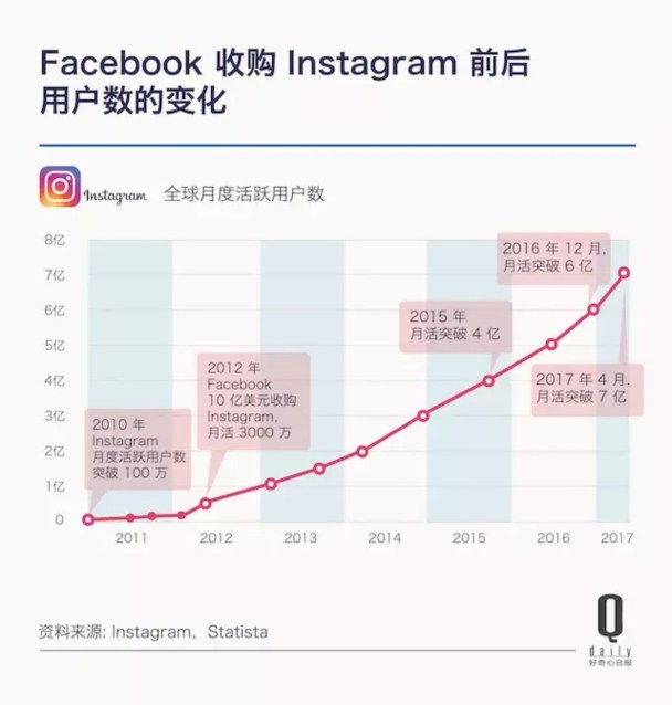 Facebook 2012 年花 10 億美元買入這個當時成立 2 年、擁有 3000 萬活躍用戶但沒有一分錢收入的社交服務。