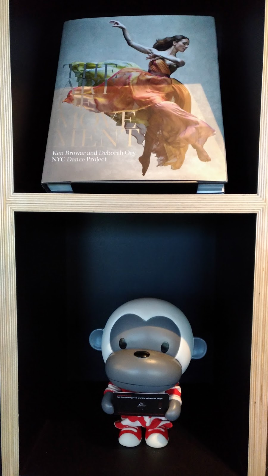 上面的「動態的藝術(The Art of Movement)」(應該是攝影集)封面美得讓我忍不住拍照下來;下面的猴玩偶好像是某潮牌的產品