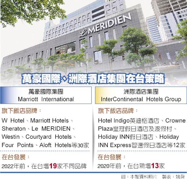 此外,旗下擁有12個旅館飯店與酒店式公寓品牌的洲際酒店集團(InterContinental Hotels Group),台灣與大中華區發展總監廖淑珒也證實,台灣已確定有13家旅館飯店,在2020年前陸續開幕後將掛上洲際酒店集團旗下飯店品牌,她並表示,這些旅館飯店與洲際酒店集團簽的都是「全權管理」(Total Management)的合約。