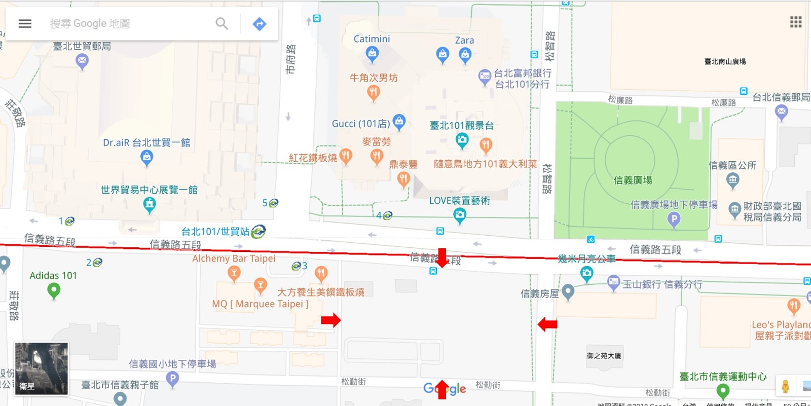 | 台北市信義區D3區塊(紅色箭頭指向處,圖片來源: Google Map) |
