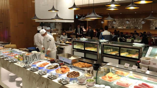 由近至遠:飲料區(汽水、果汁、茶與咖啡)、壽司區(小得看不見 囧,就在上圖冷盤區的左邊)