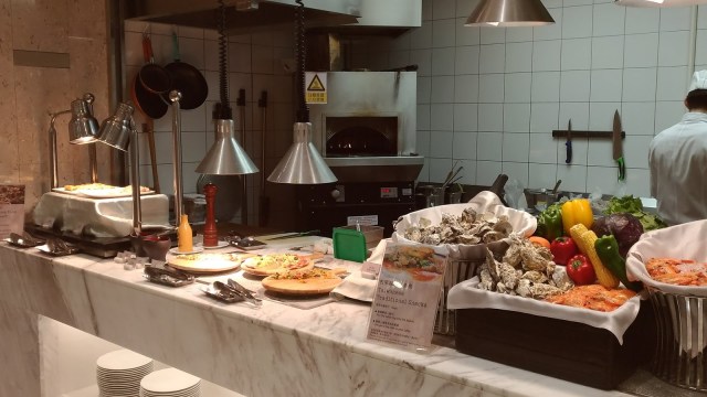 | 由近至遠:蝦與現作蚵仔煎、現烤手作披薩、港式小點心 |