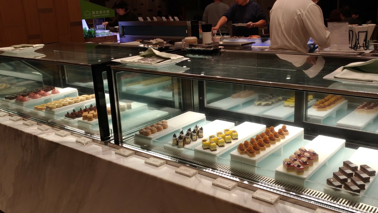 由近至遠:飲料區(汽水、果汁、茶與咖啡)、壽司區(小得看不見 囧,就在上圖冷盤區的左邊)