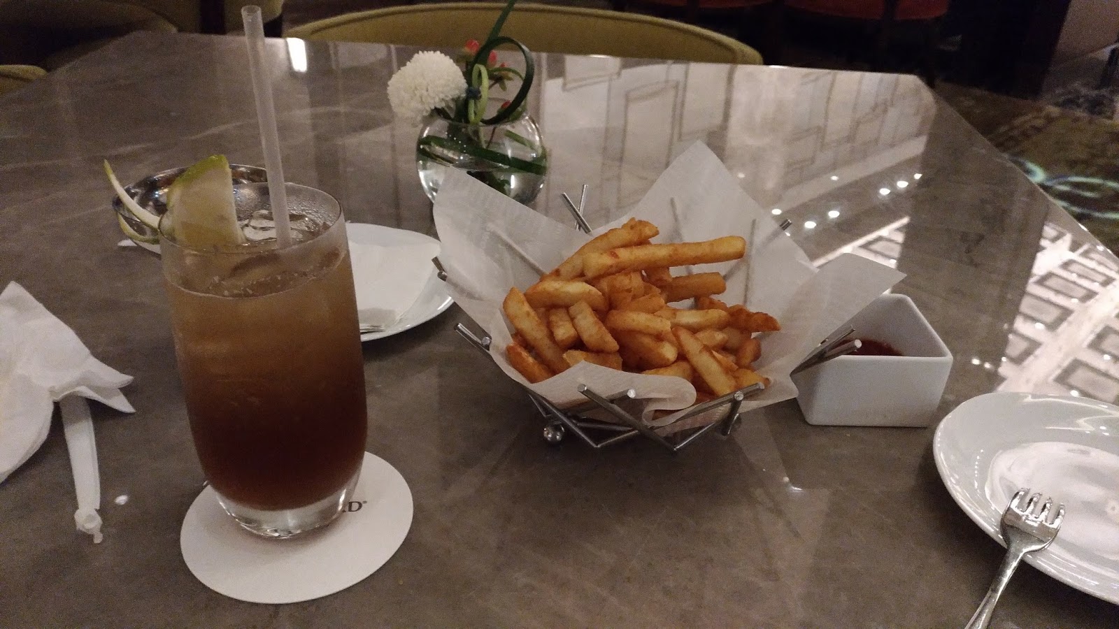 喝了二杯,覺得有點有點嘴饞,於是第三回合除了點了杯「長島冰茶」外,再加了炸薯條…