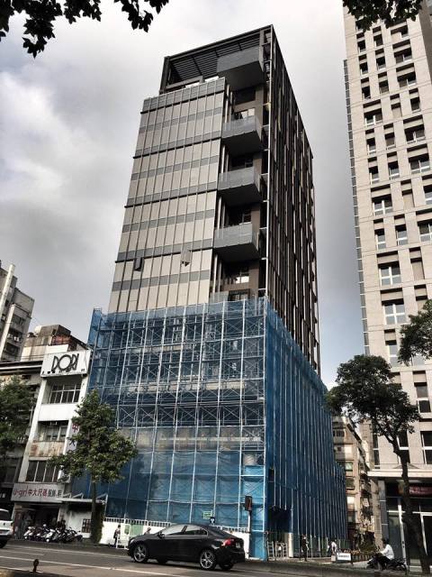 | 左方有樹的部份是中山北路,而此圖是呈現巷內建築體的全貌 (圖片來源: 九昱建設公司官網 ) |