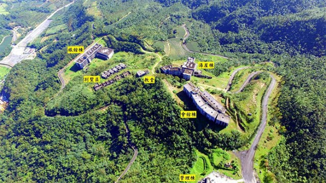 | 位於宜蘭三星鄉草湖玉尊宮上方的五星級天外天渡假酒店開發案,10年前因財務糾紛,僅完成主體結構工程即停擺至今。 |