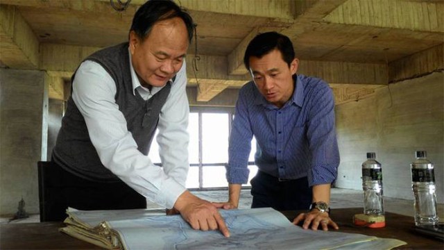 欣芮國際開發公司董事長劉貴富(左)和合作的萬豪酒店亞太發展部高級副總裁陳智能(右) 在飯店園區內場勘。