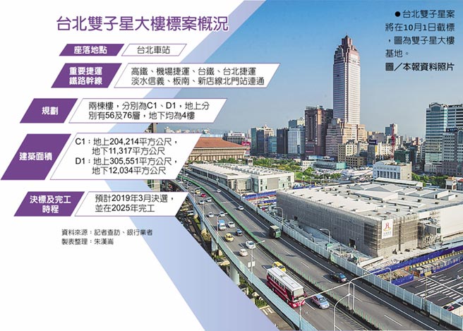 台北雙子星大樓的座落地點在台北車站特定專用區內,該摩天大樓已是「六鐵共構」,極具地利優勢,因此,北市府為了避免招標過程再有爭議,此次重啟招標時,對於兩棟分別為76層(代號D1)及56層(代號C1)樓高的雙子星大樓,特別訂定嚴格的「三階段標」。