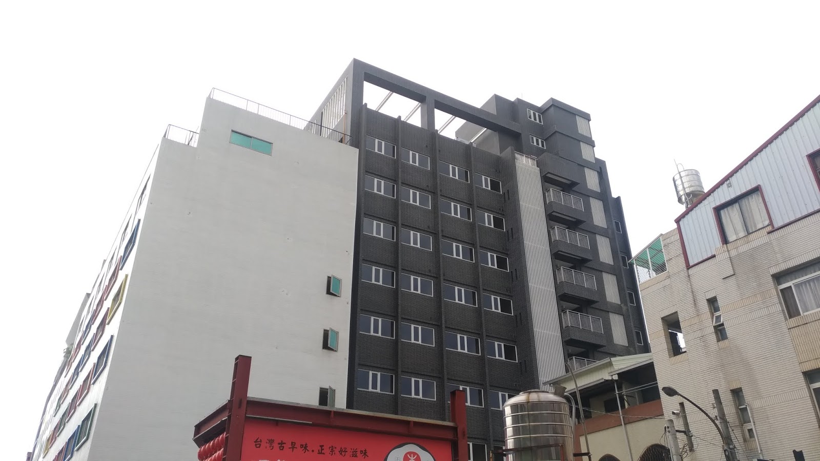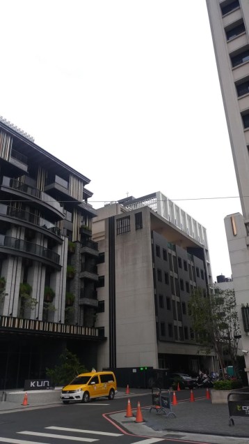 台中逢甲智選假日酒店(圖中頂樓為白色裝飾欄杆者),與左方的KUN Hotel 只隔一棟住商混合大樓
